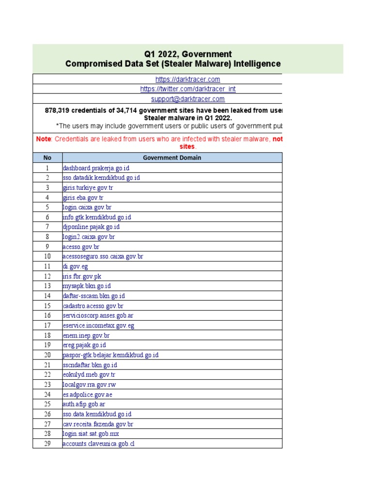 Darktracer Q1 2022 Compromised Data Set Intelligence Report Government Pdf Information Technology Computer Networking